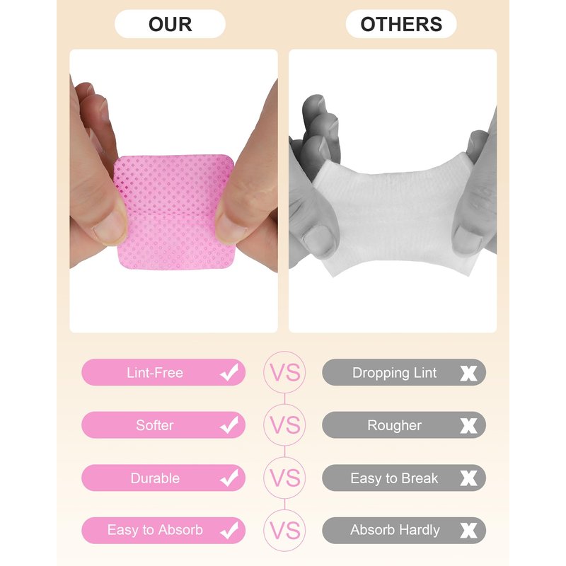 - Strong Absorption: Lint free wipes are absorbent and anti-static, keeping them clean, tidy and residue-free, can be used as nail wipes to clean nails and wipe glue from eyelash extensions, bringing your customers a powerful and advanced body.