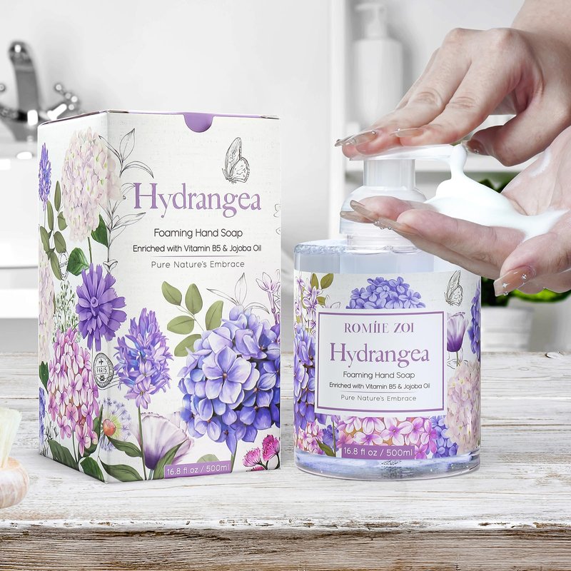 - Nature's Embrace - Infused with fine fragrance oils and premium ingredients, our hydrangea foaming hand soap brings the charm of floral elegance to your fingertips.