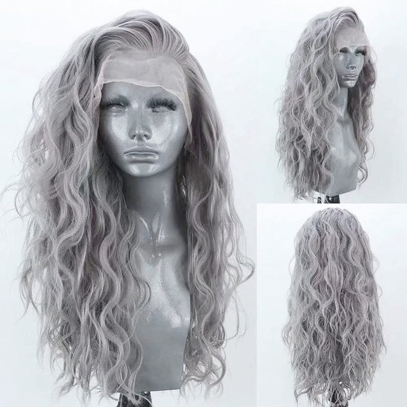 • ❤Wig Type: Synthetic lace front wig, the color is silver grey,the length is 24 inch (kind reminder: slightly color difference between different monitors).