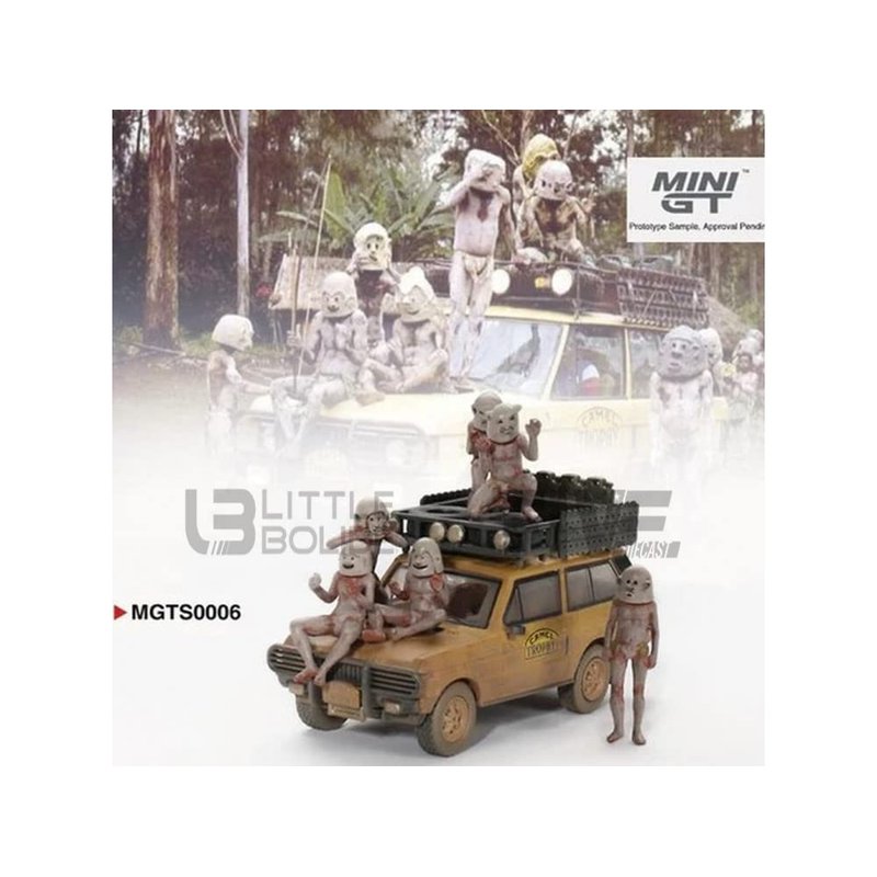 Brand new 1/64 scale diecast car model of Roofrack Tan (Dirty Version) "Camel Trophy - Papua New Guinea Team USA" (1982) with "Papua New Guinea Asaro Mudmen" 6 piece Figure Set die cast model car by True Scale Miniatures MGTS0006