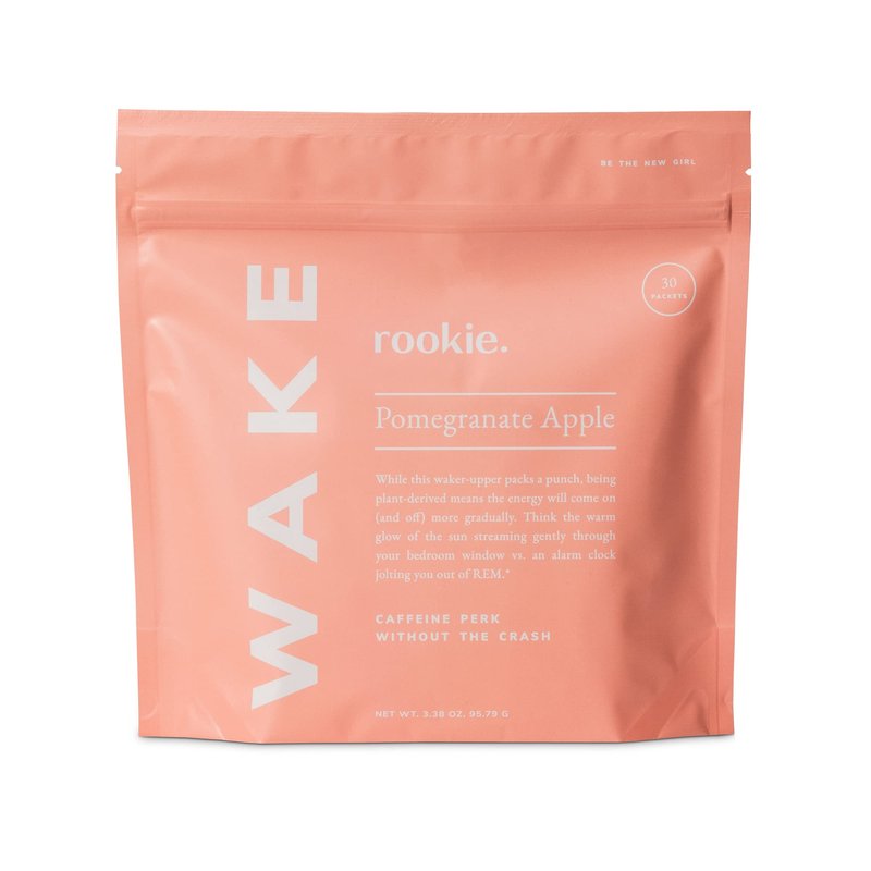 125 mg caffeine per serving. Gluten free, soy free. dairy free, cruelty free. Non-GMO. Be the new girl. While this waker-upper packs a punch, being plant-derived means the energy will come on (and off) more gradually. Think the warm glow of the sun streaming gently through your bedroom window vs. An alarm clock jolting you out of rem. Caffeine perk without the crash. Wake is made with natural stimulants like green tea and guarana, plus ashwagandha to help the body handle mental and physical stress. Drink it when you first wake up, as a pre-workout, or when falling asleep at your desk. Cruelty free. rookiewellness.com. (at)rookiewellness. (These statements have not been evaluated by the Food and Drug Administration. This product is not intended to diagnose, treat, cure, or prevent any disease.) Made in the USA.