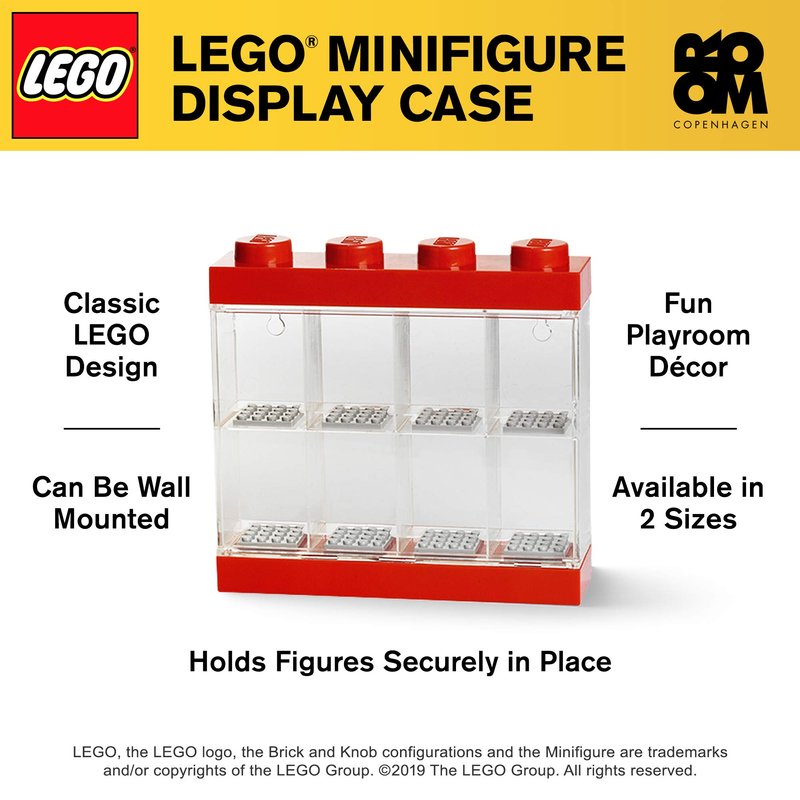 Room Copenhagen LEGO Minifigure Display Case, Stackable Storage Container for Collectible Figurines, 4 Stud, Bright Red