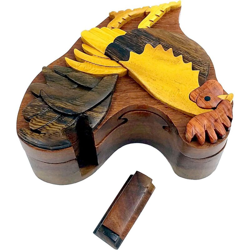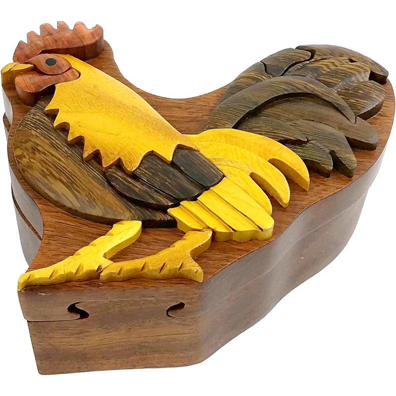 Rooster - Natural Wood Intarsia Puzzle Box - Handcrafted with Secret Compartment