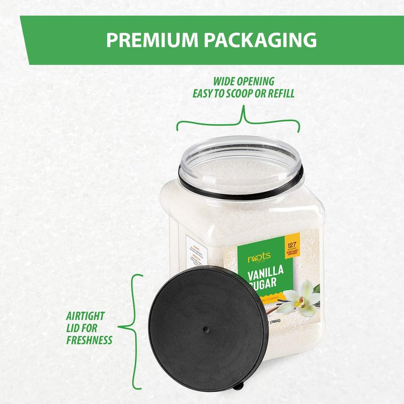 - PREMIUM AIRTIGHT PACKAGING FOR FRESHNESS: This bulk 27oz container of vanilla sugar arrives to you with a careful seal that ensures lasting freshness. It comes complete with a wide resealable screw top for easy-access scooping, and rests stably on your pantry or shelf.