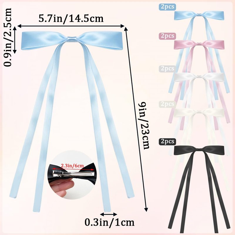- BOW HAIR CLIPS: These bow hair clips are made of metal clips and soft ribbon material with long tails for a bright appearance. Their design is simple and generous, perfect for women and girls to wear on a daily basis.
