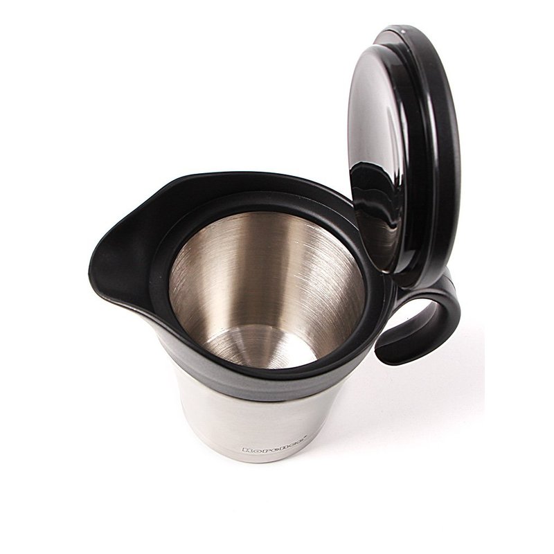 ·The hinged plastic lid reduces heat loss and makes it easier to refill. It also has a wide spout to make sure the liquid flows smoothly when pouring. A powerful ergonomic plastic handle grips easily.