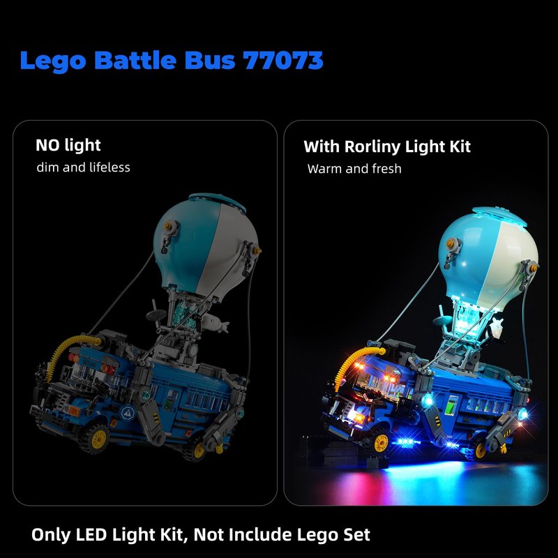 - Illuminate Your Lego World: Tailor-made for the Lego Fortnite Battle Bus. This LED lighting kit breathes life into your Lego 77073 creations with a stunning illuminated display. (Note: Lighting kit only, no Lego model included)