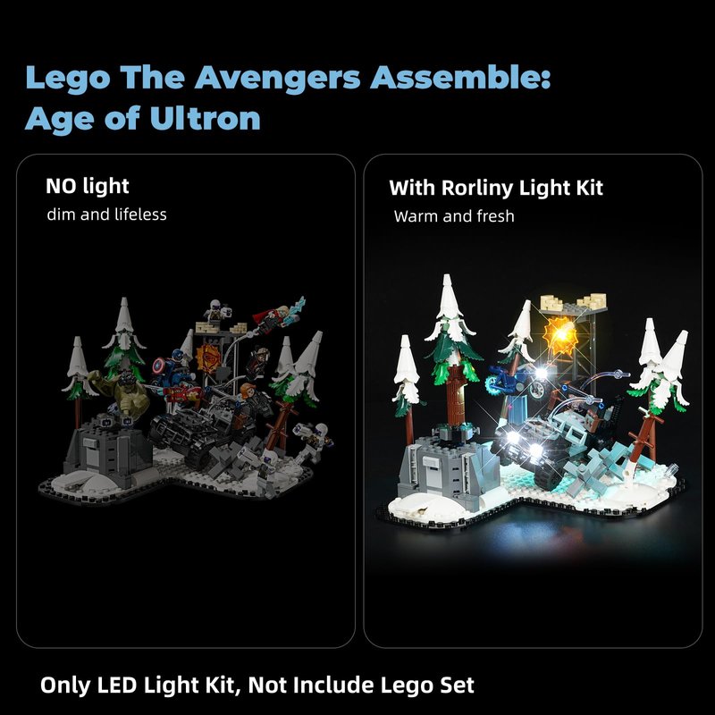 Rorliny LED Lighting Kit Compatible with Lego The Avengers Assemble: Age of Ultron 76291, Creative Light Compatible with Lego 76291 Set (Lights Only, No Lego Models)