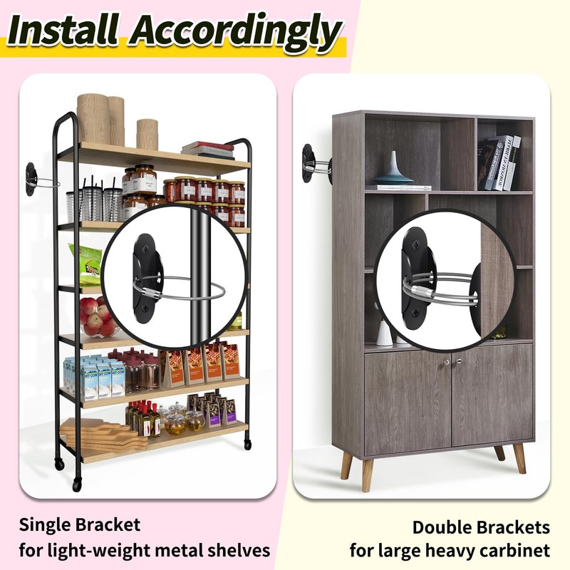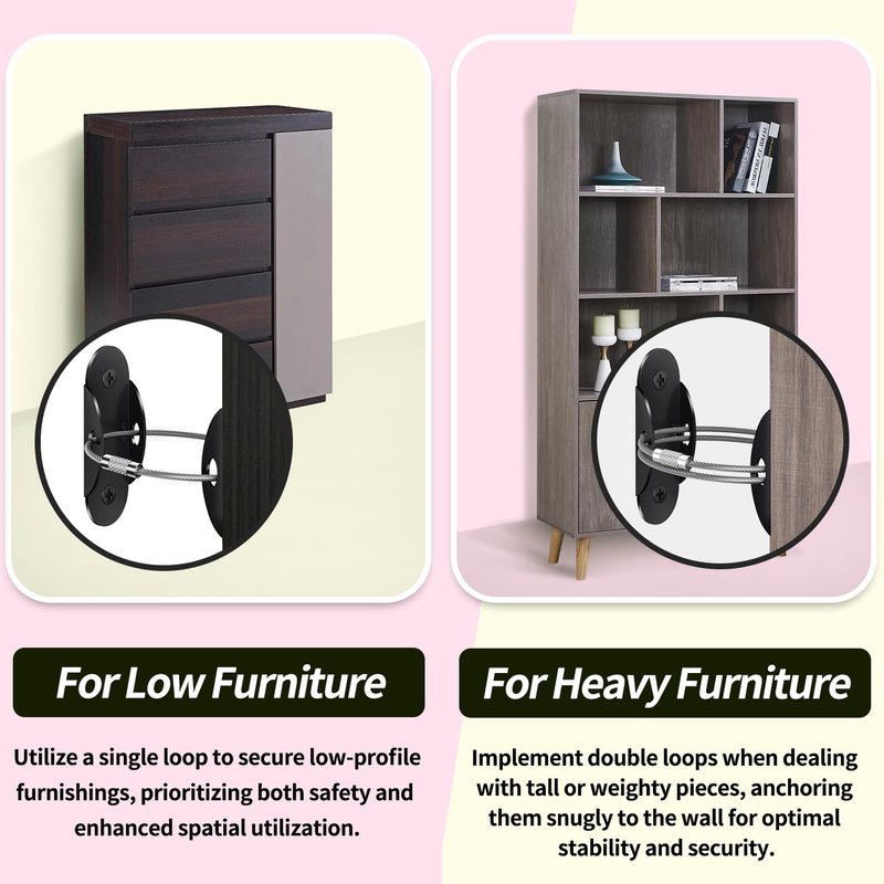 - Versatile Protection: Safeguard your space by anchoring furniture items such as bookcases, dressers, cabinets and wardrobes to the wall, effectively reducing incidents with curious toddlers. The detachable anti-tip anchor offers flexibility, allowing easy removal for cleaning or furniture repositioning.