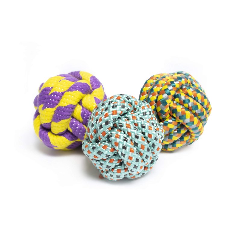- 2.5-inch braided rope ball toy. Made of high quality, non-toxic materials. For all sized dog breeds, cats, and other small pets.