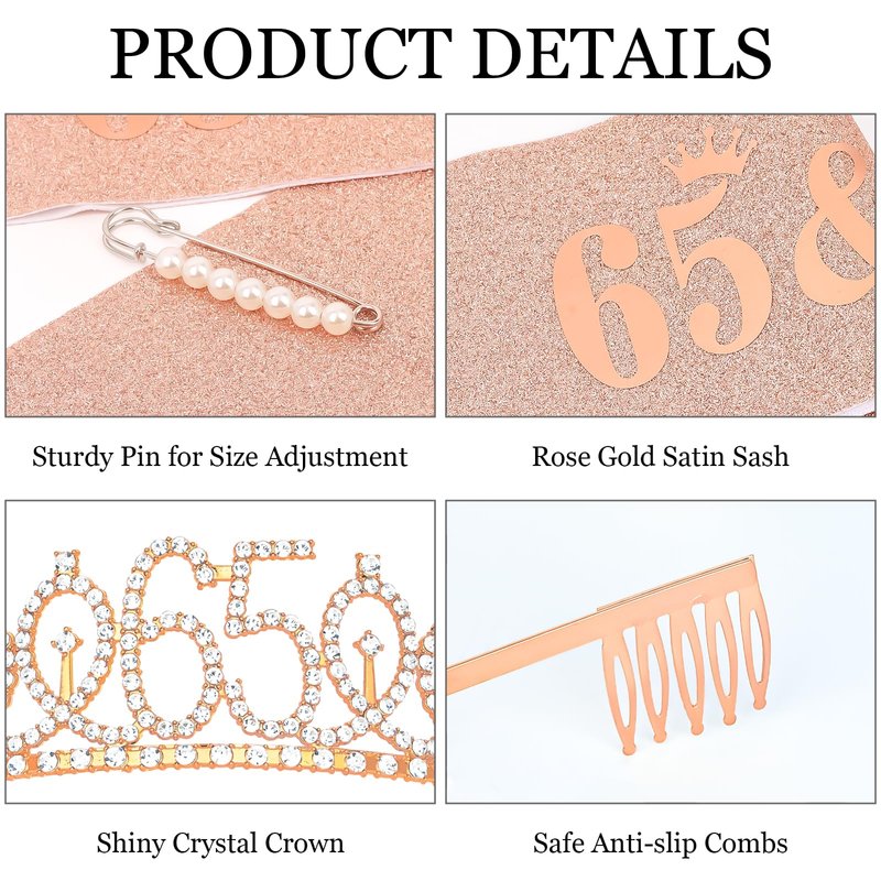 - 【65th Birthday Tiara】: Tiara measures 5.3 inches in diameter and 2.7 inches height, which is durable and comfortable to wear.