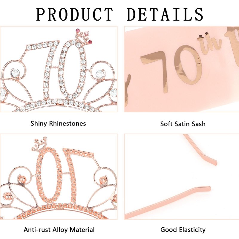 - 70th Birthday Favors : Get the sash and tiara at the same time and be prepare for your 70th birthday party! We hope they can bring you a lot of happiness and leave unforgettable memories