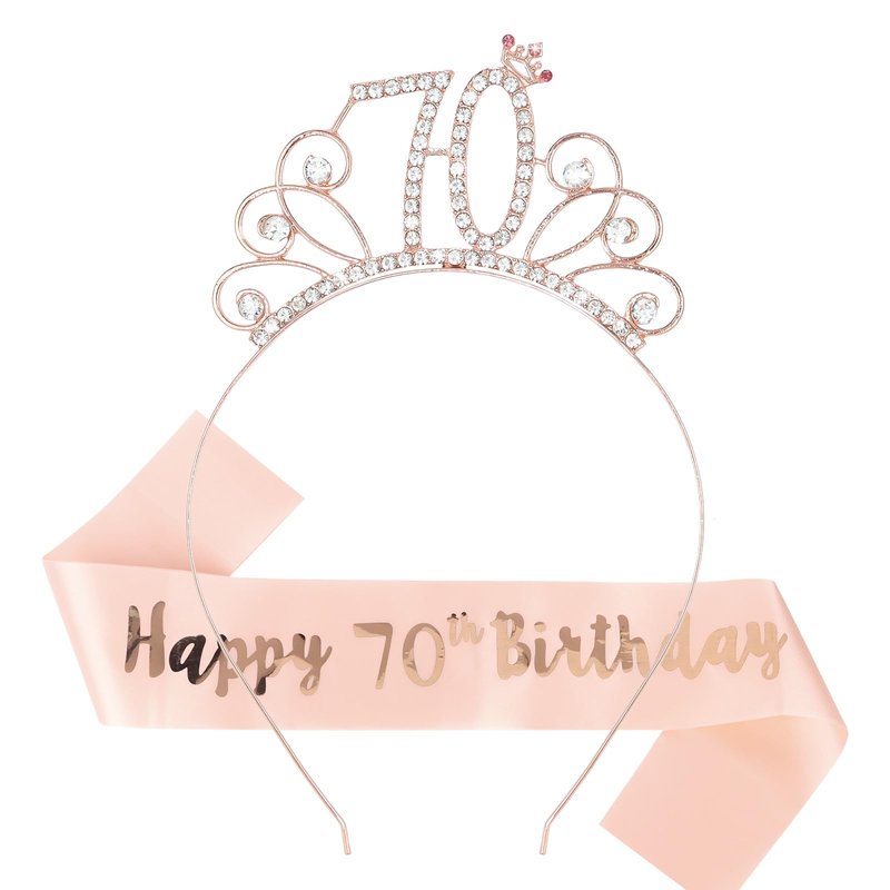 Rose Gold 70th Birthday Sash and Tiara for Women, 70th Birthday Decoration for Women, 70th Birthday Sash and Headband Set, Happy 70th Birthday Decorations, 70th Birthday Gifts for Women