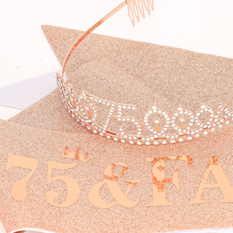 Rose Gold 75th Birthday Sash and Tiara for Women, Happy 75th Birthday Gifts for Women, 75th Birthday Sash and Crown Set, 75th Birthday, Womens 75th Birthday Gifts