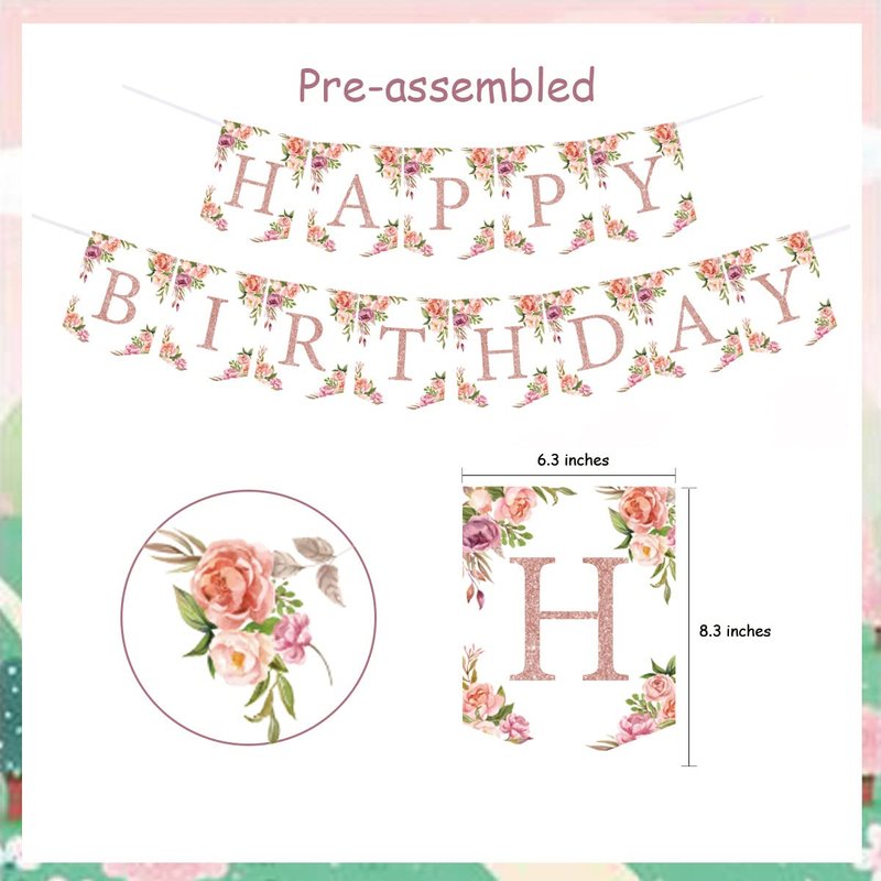 - Pre-Assembled Banner: The floral happy birthday banner doesn’t need to be assembled by yourself, easy to use. Just take them out and hang them on wall, mantel, window, high chair, tree. . .