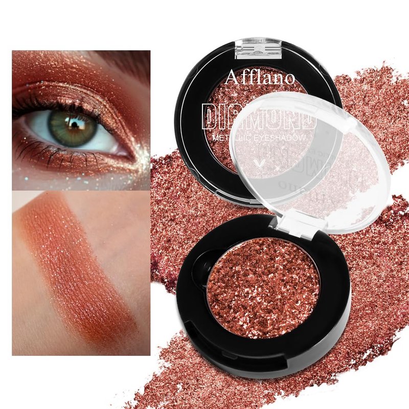 Rose Gold Glitter Eyeshadow High-Impact Multi-Dimensional Metallic Finish Eye Shadow, One-Swipe Coverage, Long Lasting High Pigment Shimmer Eye Makeup Palette for Mature Skin, Metal (15H Sunset Glow)