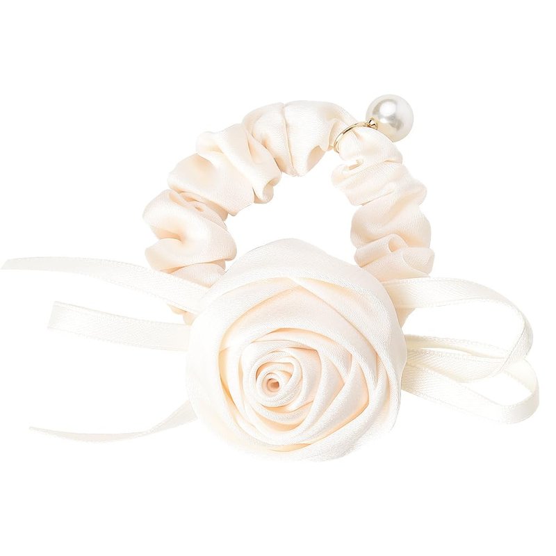 Rose Hair Ring Rope for Women Girls Flower Hair Ties Ring Elegant Hair Bands Fashion Hair Scrunchie Elastic Hair Accessories Decoration for Teen Girls White Ponytail Holders with Pearl Pendant