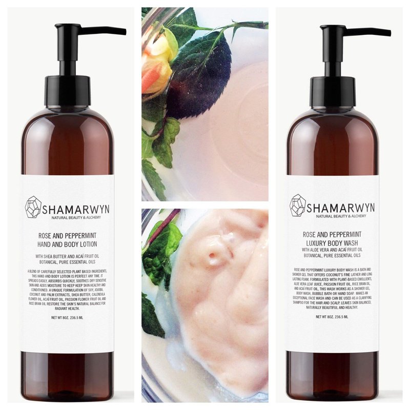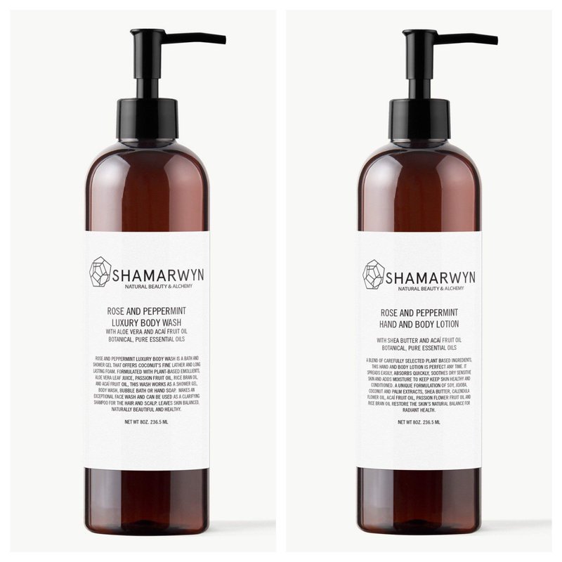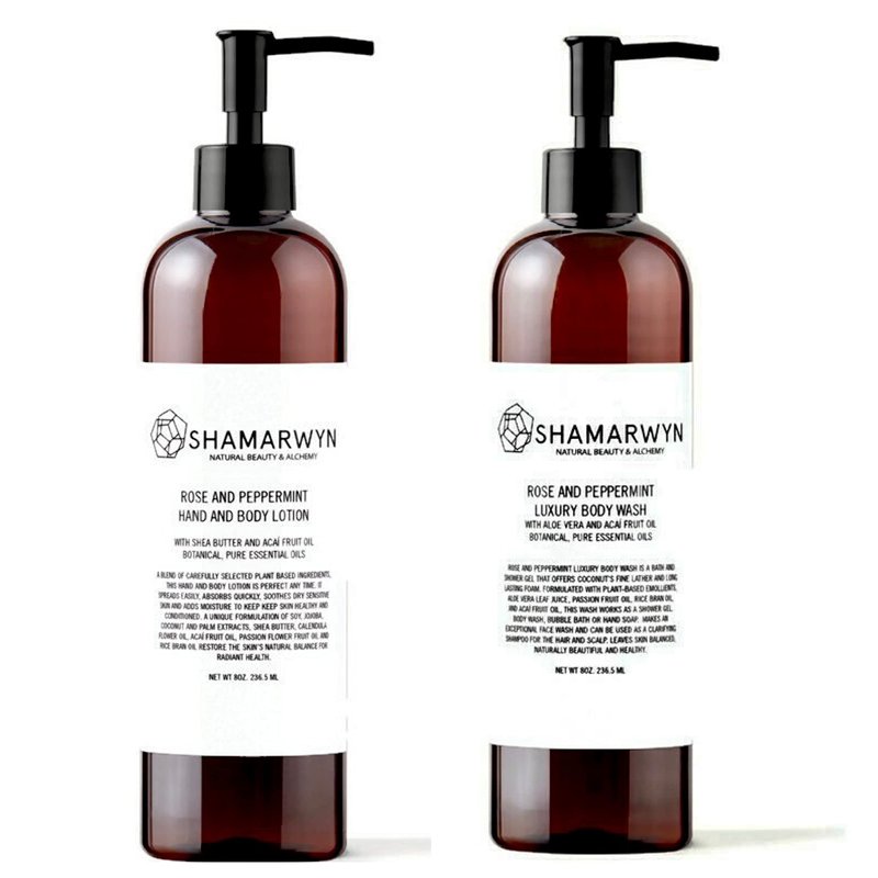 Rose & Peppermint Body Gift Set – Luxury Body Wash & Lotion with Natural Organic Essential Oils – 8oz Each