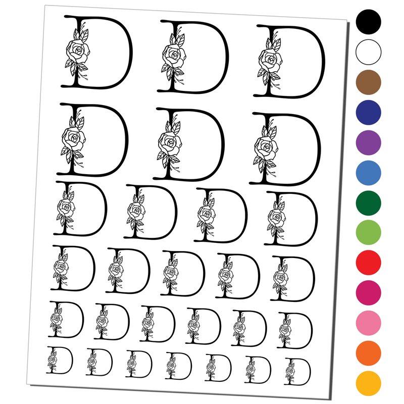 Rose Typewriter Font Capital Letter D Temporary Tattoo Water Resistant Fake Body Art Set Collection - Black (One Sheet)