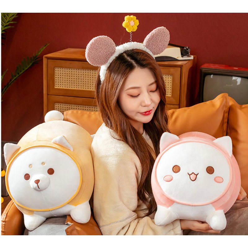 - 【Unique Design】The cat throw pillow is 15.7" (40cm) long. with cosplay outfit cleverly combines two animals into one. Comfortable Companion: Kitten Presents super soft, cute, & adorable stuffed animals that unfold into fuzzy pillows for sleep.