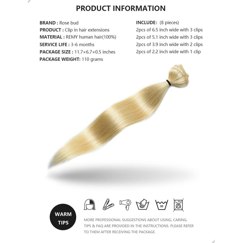 - 100% Satisfaction Clip In Extensions ◆ The extra clips are given away, ROSEBUD concern everything you would meet. There may have color differences because of monitors.To ensure color match, you can Email pictures taken in outdoor natural lights to us before purchase, for asking which exact color fits you better.