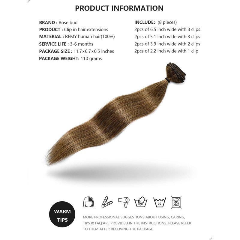 - 100% Satisfaction Clip In Extensions ◆ The extra clips are given away, ROSEBUD concern everything you would meet. There may have color differences because of monitors.To ensure color match, you can Email pictures taken in outdoor natural lights to us before purchase, for asking which exact color fits you better.