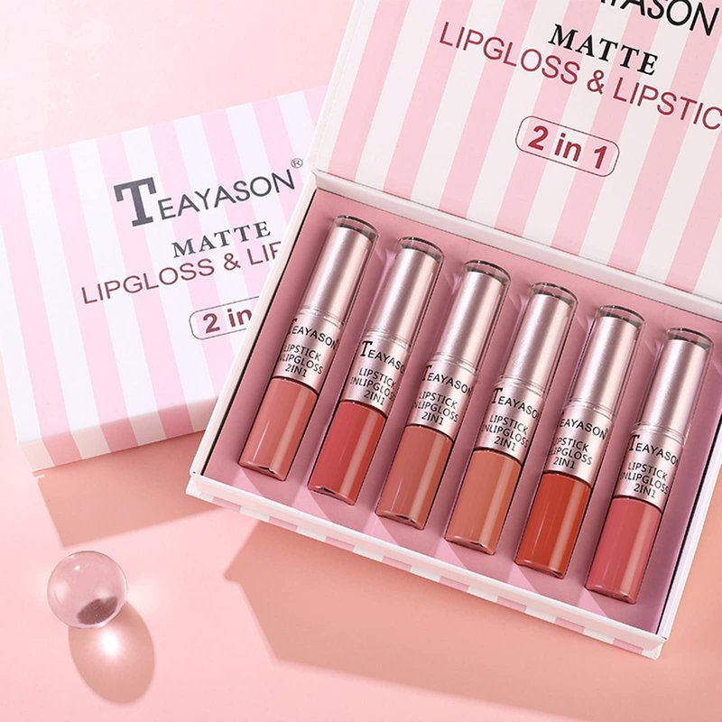 RoseFlower Lip Gloss Set, 6 Piece Matte liquid Lipstick Makeup Set, Non-sticky, High Shine, Long Lasting Matte liquid Lip Gloss Set, Rich Varied Colors - 077