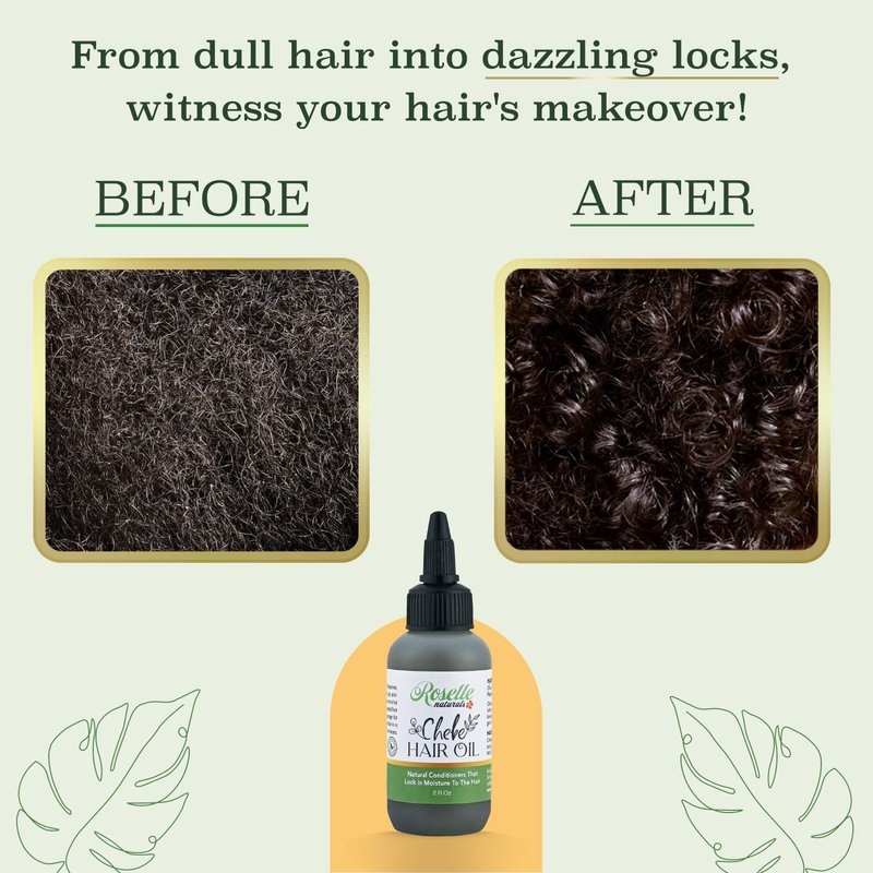 - MOISTURIZES AND CONDITIONS: Our Chebe Hair Growth Oil deeply nourishes each strand, keeping your hair hydrated and soft while preventing dryness and brittleness. The natural ingredients work together to lock in moisture, giving your hair a healthy, lustrous shine without feeling greasy. Ideal for those struggling with dryness, Roselle Chebe oil for hair growth ensures your hair remains vibrant and full of life.