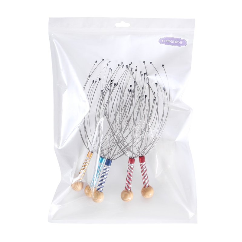 ROSENICE Scalp Massager 5pcs Hand Held Therapeutic Head Scratcher Steel Wire Head Massager with Wooden Handle for Home Spa Relief and Relaxation