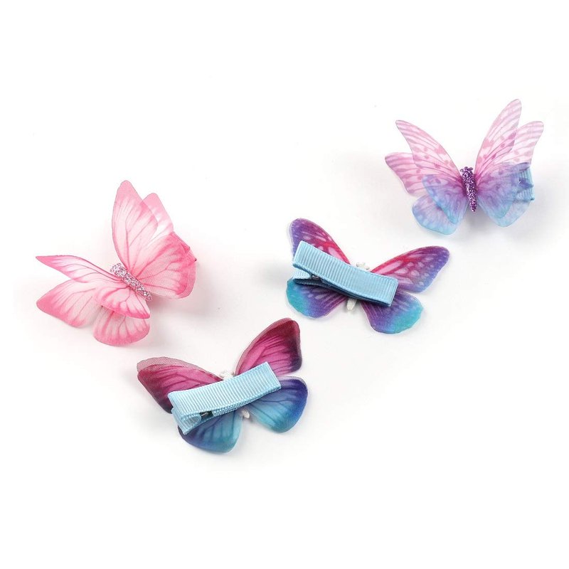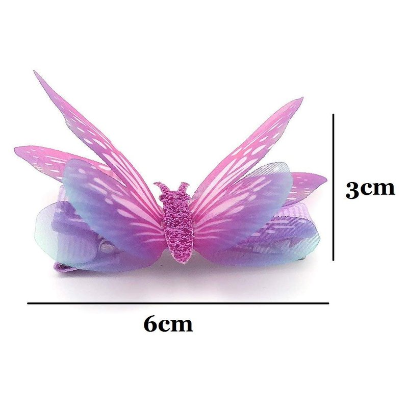 Rosette Hair Colorful Chiffon Butterfly Modelling Hair Clips- Organza Wings Ribbon Wrapped Clips Sets (6pcs/set-1)