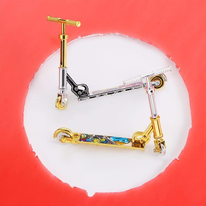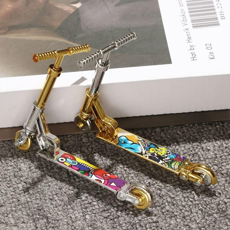 Rosojodg Gold Mini Two Wheel Toys Tiny Fingerboard Scooters, Mini Finger Skateboards Toy, Finger Scooter Fingertip Movement Skateboard for Finger Training Finger Toy Skateboards