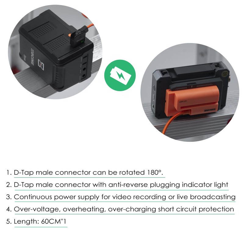 - 【Specifications & plug type】Input voltage: 12V - 17V; Output voltage: 8.4V (stable); Output current: 3A (maximum). Plug A: NP-F550 virtual battery. Plug B: D-tap. Cable length: 60cm|24 inches.