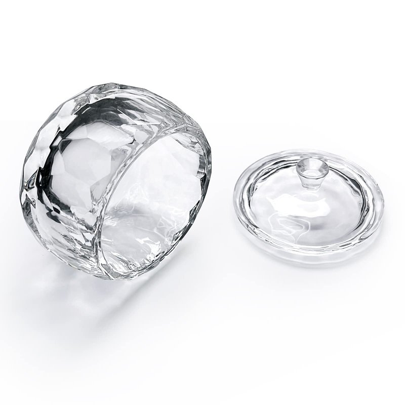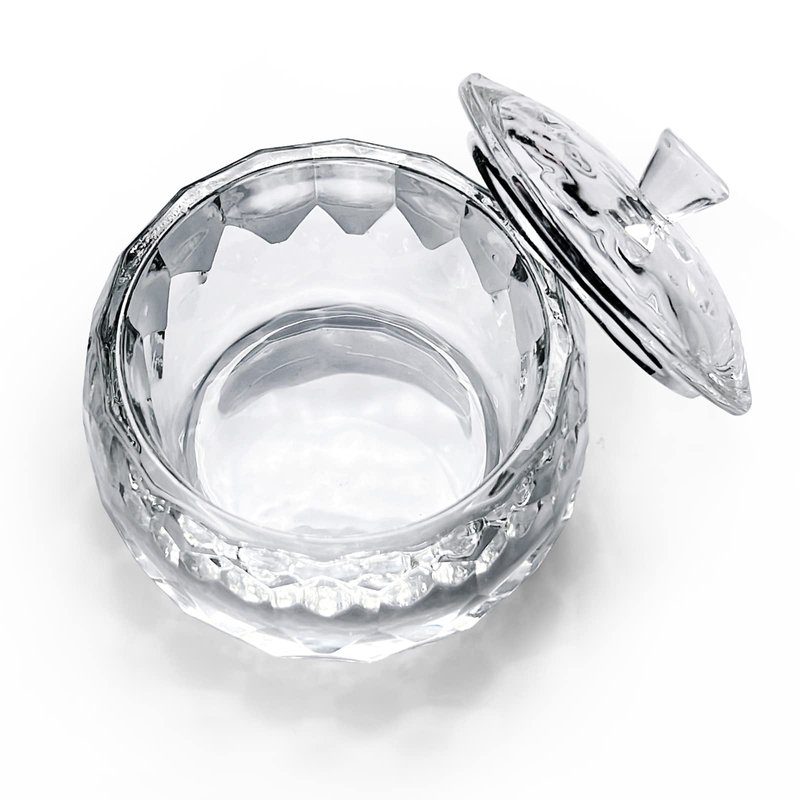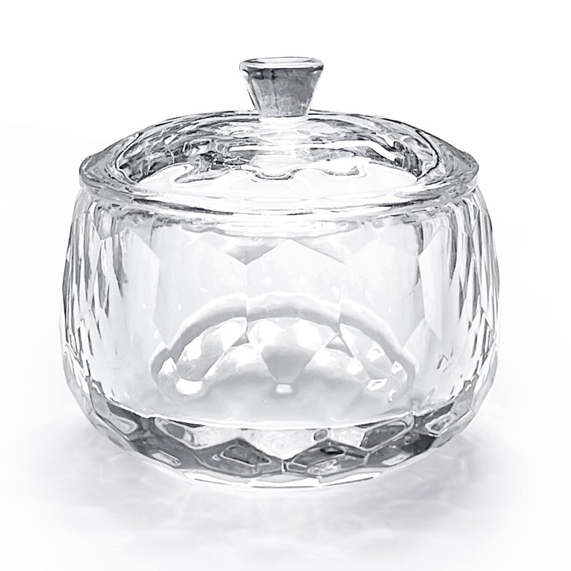 Round Crystal Clear Acrylic Liquid Powder Glass Dappen Dish Glass Cup w Cap Lid Bowl for Acrylic Nail Art Transparent Kit, HJ-NAPB013