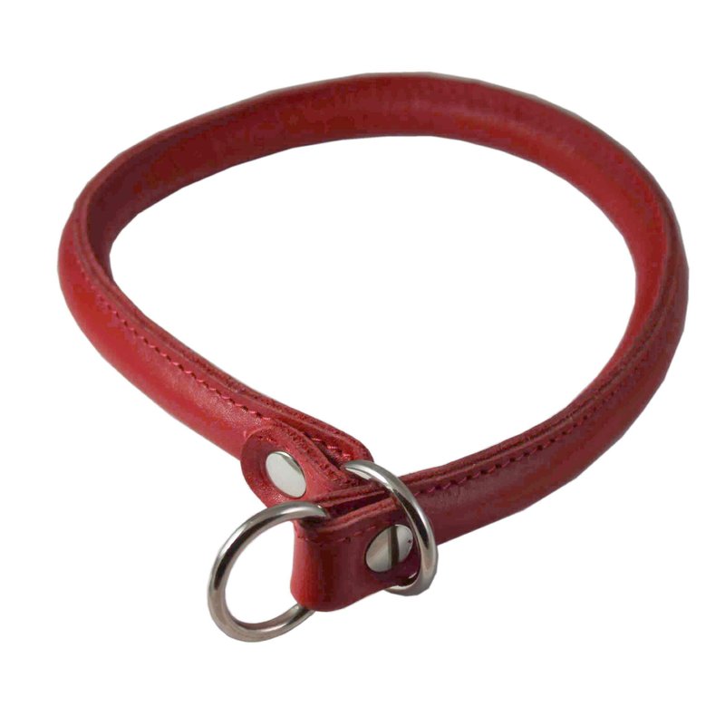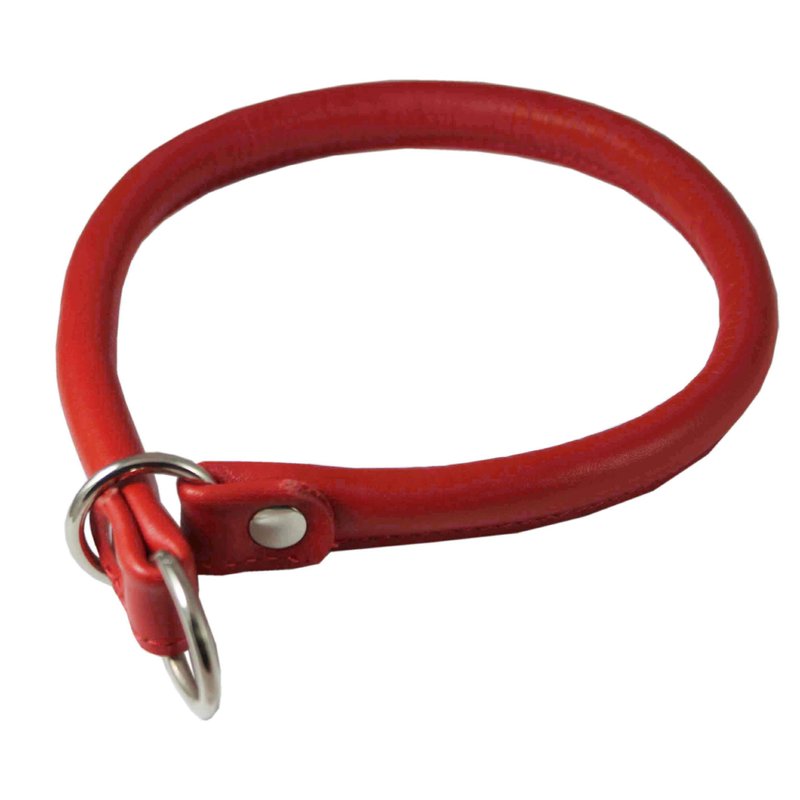 Round Genuine Rolled Leather Choke Dog Collar 19" Long Red