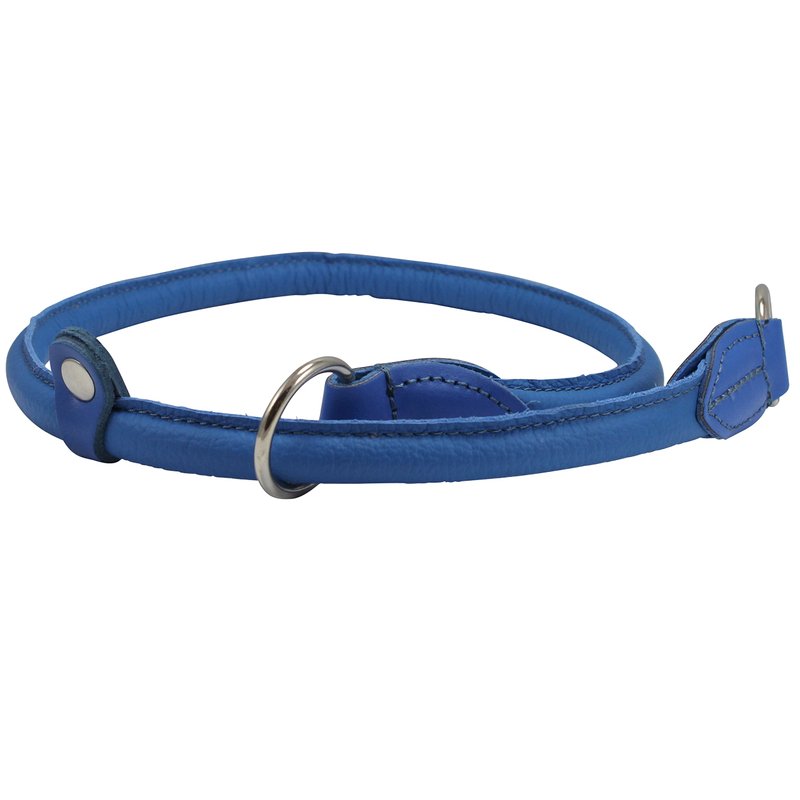 Round Genuine Rolled Leather Choke Dog Collar Blue (30" Long)