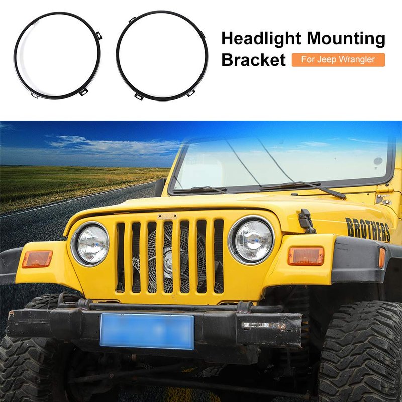 Round Headlight Mounting Bracket Rings for 2007-2018 Jeep Wrangler JK JKU (Black)