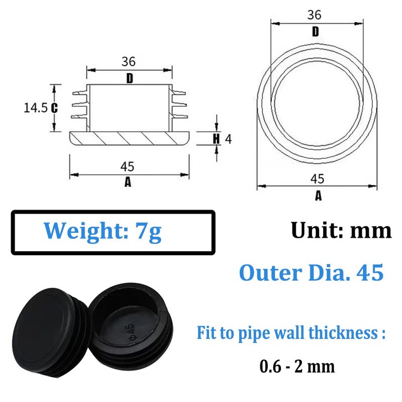 - Application: Pipe plugs are suitable for steel and wood furniture, metal furniture, fitness equipment, racks, student beds, desks and chairs, shelves, computer desks, beach chairs, hardware wrought iron, beauty equipment, household items, etc.