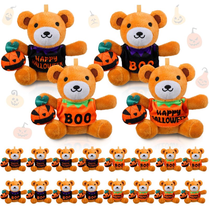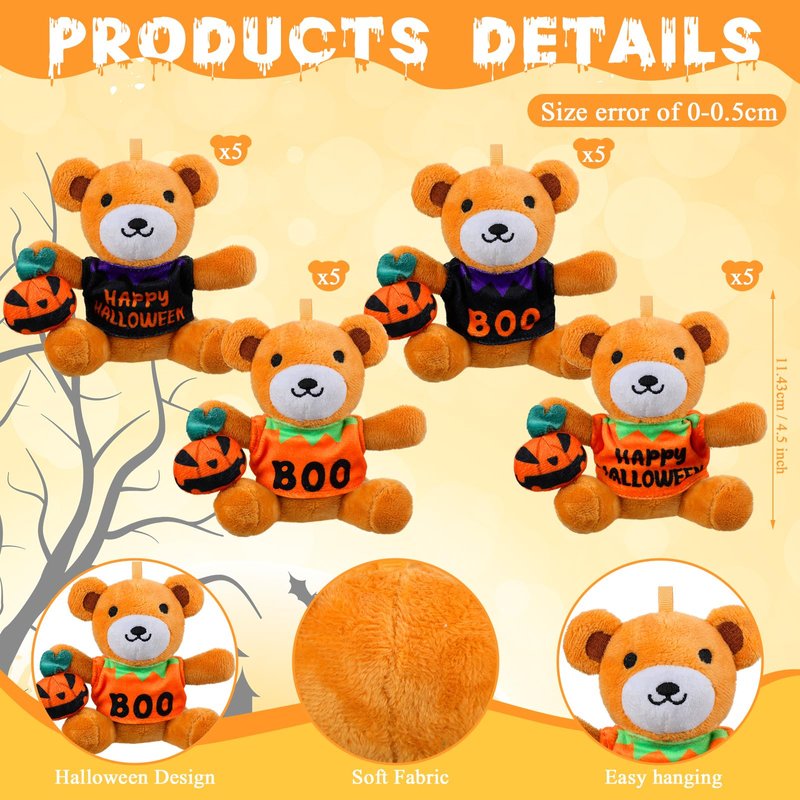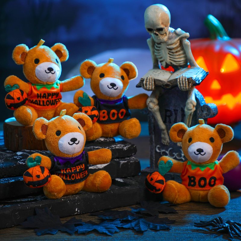 • Package Content: you will receive 20 pcs Halloween stuffed bears, 4 styles, 5 pieces each; This is enough quantity and styles for you to decorate or share with your classmates or family; The Halloween bear animal will stand out amongst other ghosts in this vibrant orange pumpkin outfit, making it a nice addition to a stuffed toy collection or to complete your Halloween decor