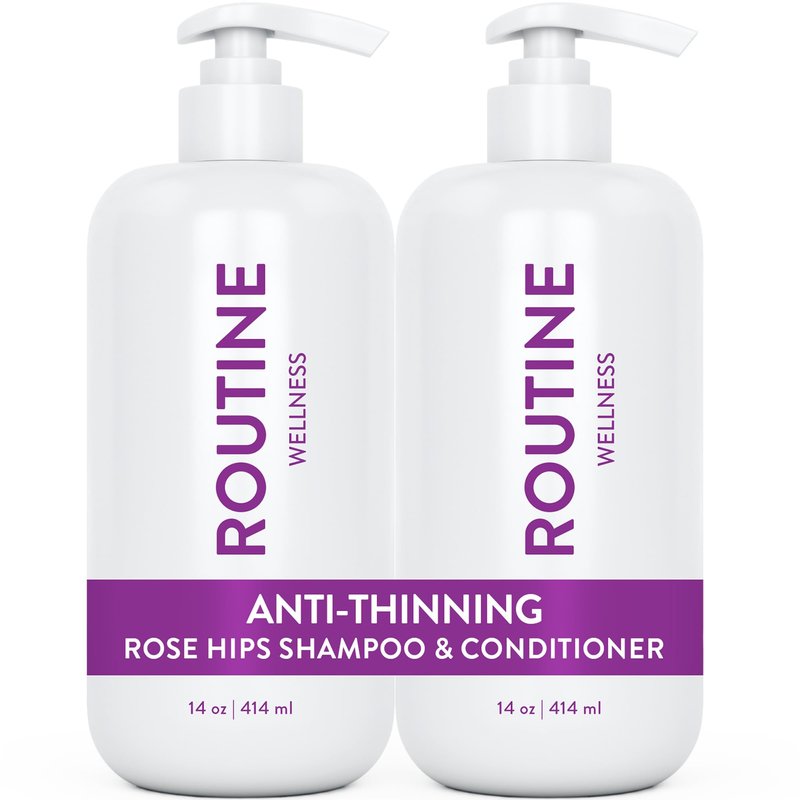 Routine Wellness Anti-Thinning Shampoo and Conditioner Set for Thinning Hair - Biotin DHT Blocker Women & Men - Color Safe Shampoo for Hair Loss & Healthier Growth - Rose Hips (Pack of 2)