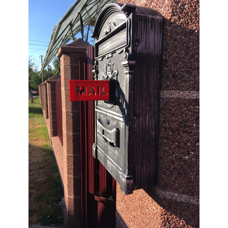 - Easy to install when your builder doesn’t provide an outgoing mail flag on your mailbox. It is great quality, sturdy and it actually looks nice on the mail box. Mounting hardware is included. It comes with 2 screws. So if you want to get the attention of the mailman, this is the perfect tool. It's so unique and red bright, your mailman will understand it immediately!