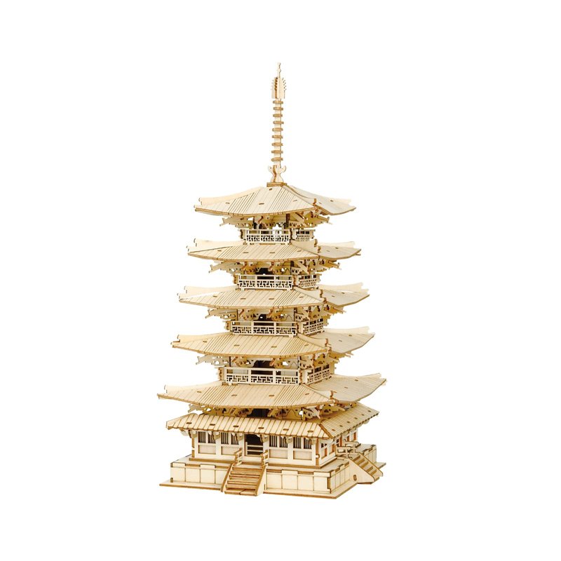 - [ Vintage Temple Model ] - This 3D puzzle is inspired by the Horyuji temple in Japan. The retro and realistic architectural style reflects the exquisite craftsmanship of mortise and tenon in religious buildings at that time from the side. Meanwhile, multiple hollowed-out patterns and overlapping floors not only highly restore the real object, but also enrich the layers of the model.