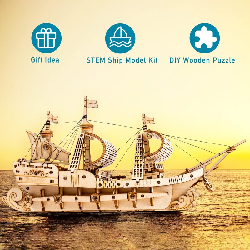 - [ Classic Design ] - This is a 3D Vintage ship model wooden kit you can build by yourself. Its a lot of fun and a great sense of accomplishment when completed.The final product is great for displaying.