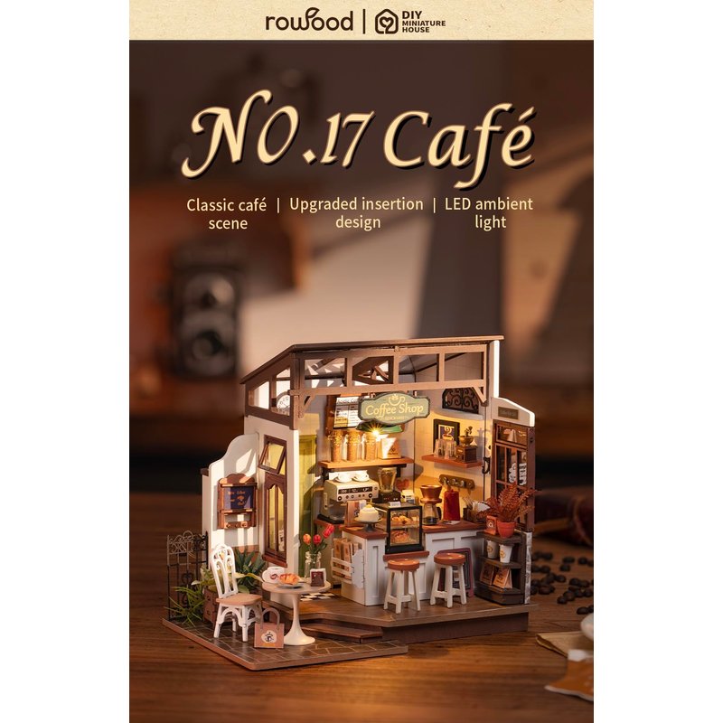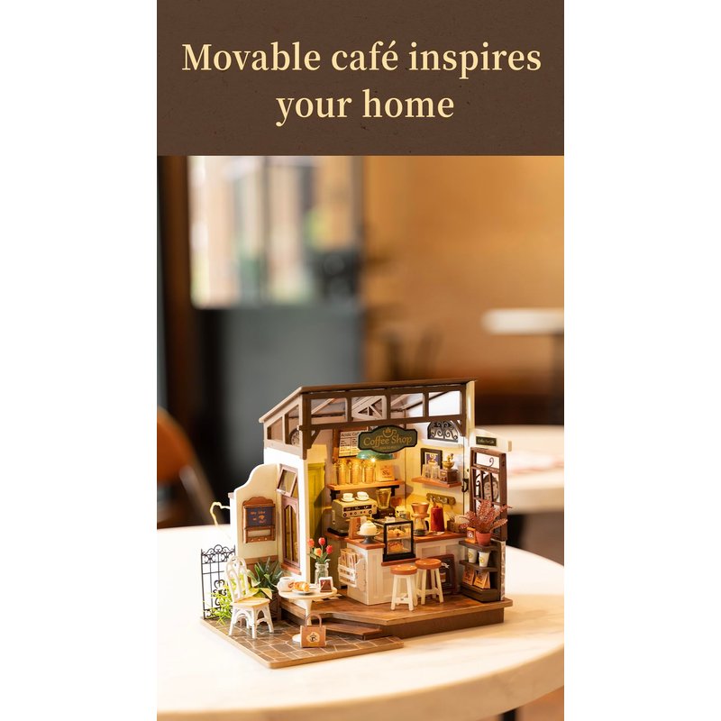 - [ Inspired Design] - Our miniature house kit is inspired by classic boutique coffee shops, featuring a cozy and relaxing atmosphere with abundant wooden elements. The open concept and seamless integration between the interior and exterior create a novel and inviting experience, while the rich details offer a variety of choices beyond just coffee for every "customer."