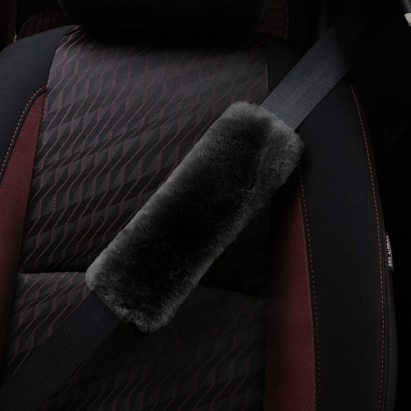 - 【TOP QUALITY】 The Soft Sheepskin Seat Belt Black Shoulder Pad will provide you with the most convenient driving experience. This is made out of high quality Genuine sheepskin. It will last you superbly year after year. It won't fade, flat or discolor.