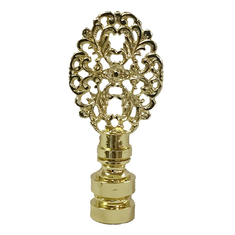 Royal Designs Oval Filigree 2.25" Lamp Finial for Lamp Shade, Polished Brass