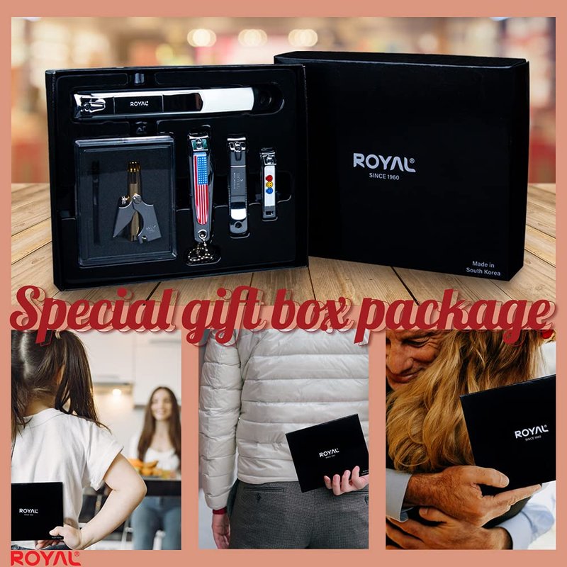 ROYAL [Made in Korea] NO Battery,5 Pcs Nose Hair Trimmer Set, Value Pack,(Nose Hair Trimmer with 4 Nail Clippers) The Best Gift for Family, (Gold&Black)