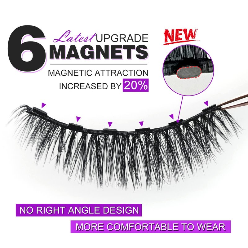 - ♛【The Latest Upgrade & Six Magnets & Lasts All Day】Our eyelashes magnetic use an exclusive upgrade configuration. Each magnetic lashes are equipped with six ultra-thin powerful magnets, 20% increase in magnetic force, eye lashes have stronger adhesion, easier and more comfortable to wear, look more natural, The long lasting technics will make you beautiful all day long!