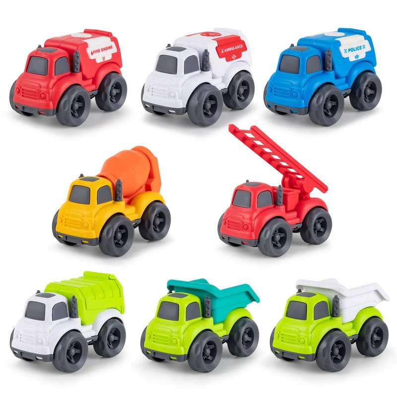 ROZEUS 8 Pcs Toddler Toy Cars for 1-3 Year, 8 in 1 Trucks Toy Vehicles Set for Toddlers, BPA Free, Phthalates Free, PVC, Dishwasher Safe, Recycled Plastic, Birthday Gifts for Boys Girls
