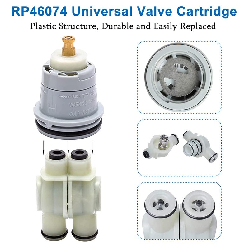 - 【Easy to Install】RP46074 shower valve cartridge is easy to install and repair the leaking faucet, no other tools needed. It can be replaced without going into the wall. Before installing the new cartridge, please clean all the contaminants around the previous ink cartridge area.