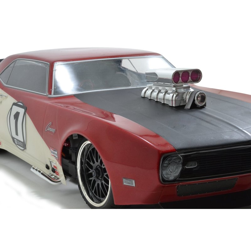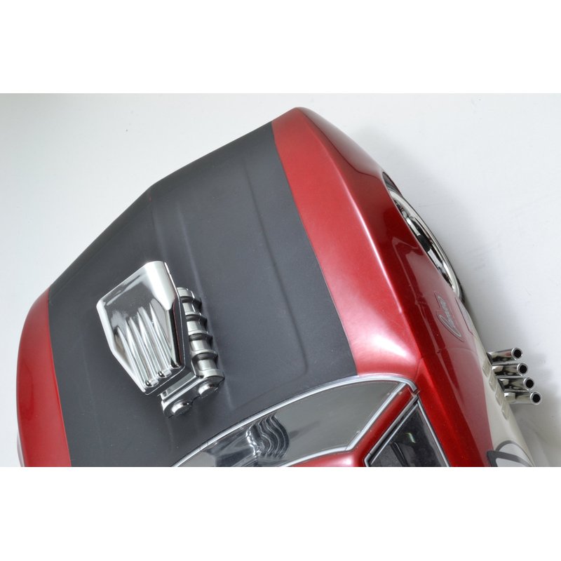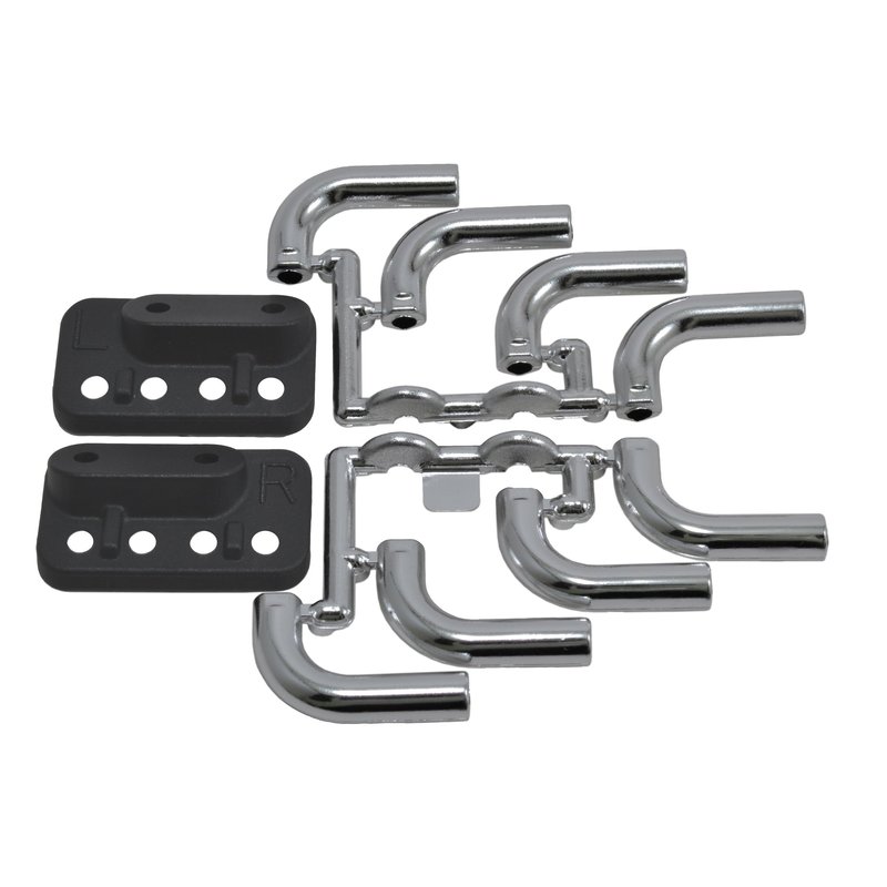This is a pair of RPM Zoomie Mock Headers in Chrome. FEATURES Works with 1/18 - 1/10 scale RC car bodies Retro 1970s design with four upturned exhaust pipes that were typically mounted on Nitro Funny Cars, Top Fuel and Monster Trucks May be mounted in different positions Molded plastic construction, chrome in color Non-functional, cannot be used as a real exhaust system INCLUDES Left and Right Zoomie Mock Headers in Chrome Mounting Hardware and Instructions